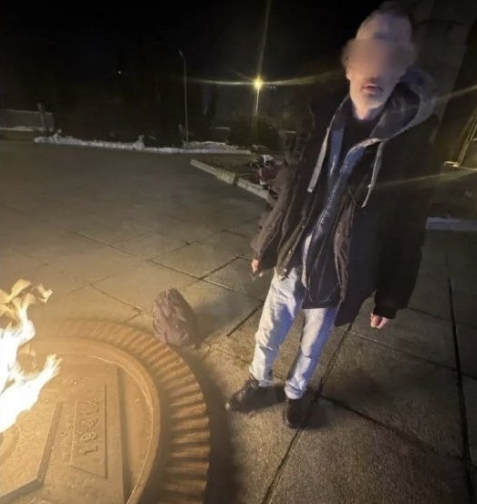 Около полуночи 26 февраля операторы системы «Безопасный город» заметили на Гвардейском проспекте Калининграда мужчину, который сидел у мемориала 1200 гвардейцам и грел ноги у пламени Вечного огня. Затем он поднёс к огню сигарету, пытаясь прикурить.