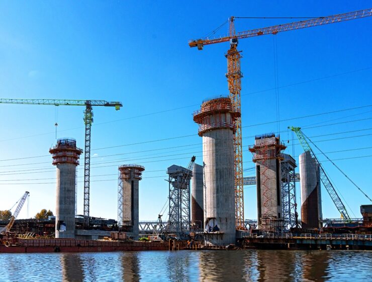На новом разводном автодорожном мосту через Преголю в Калининграде завершён монтаж ключевых элементов — четырёх противовесов подъёмного механизма. Каждый из них весит 32,5 тонны, а в рабочем состоянии — 415 тонн.