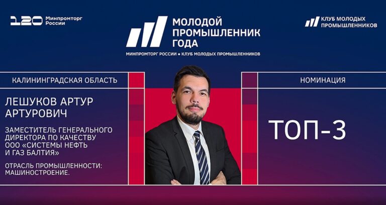 Калининградец стал призёром всероссийской премии «Молодой промышленник года» На международной выставке «Иннопром» в Екатеринбурге объявили победителей всероссийской премии «Молодой промышленник года», учреждённой при поддержке Минпромторга…