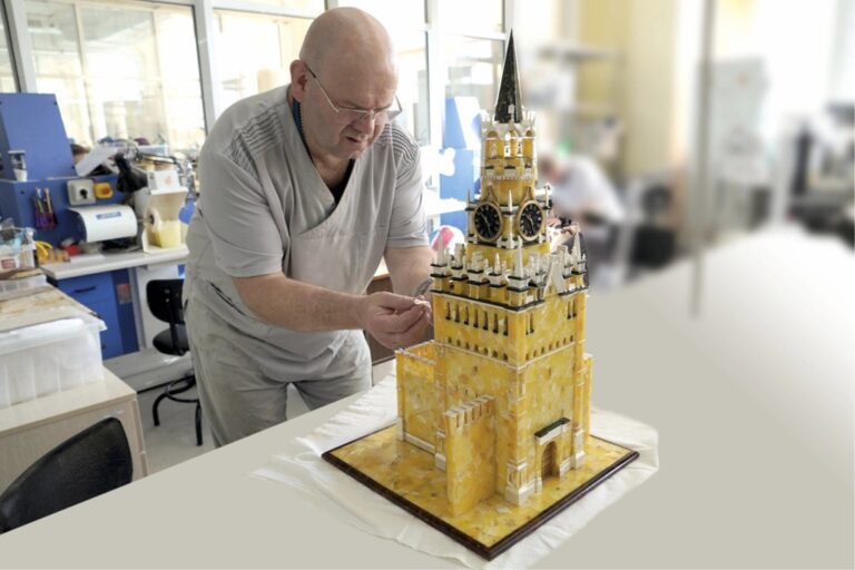 Калининградский янтарный комбинат Госкорпорации Ростех представил впечатляющую работу — точную копию Спасской башни Московского Кремля в масштабе 1:100. Сувенир создан специально к VIII Международному янтарному…