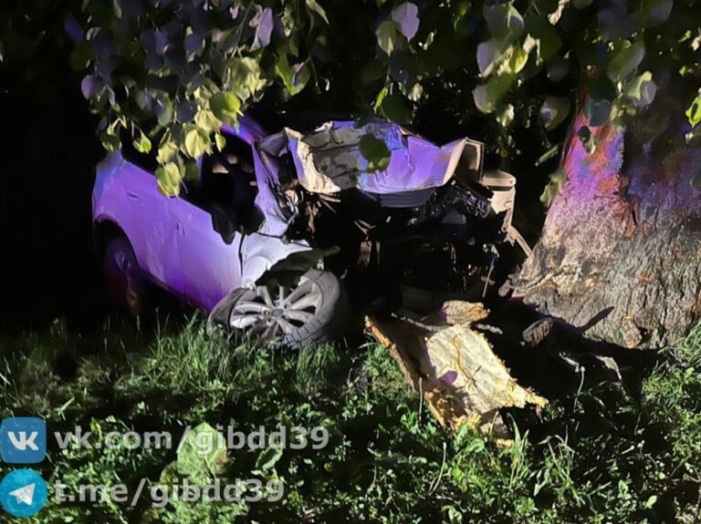 В Калининградской области накануне вечером, около 21 часа, у дома №7 на улице Специалистов в посёлке Высокое Славского района легковой автомобиль врезался в дерево.